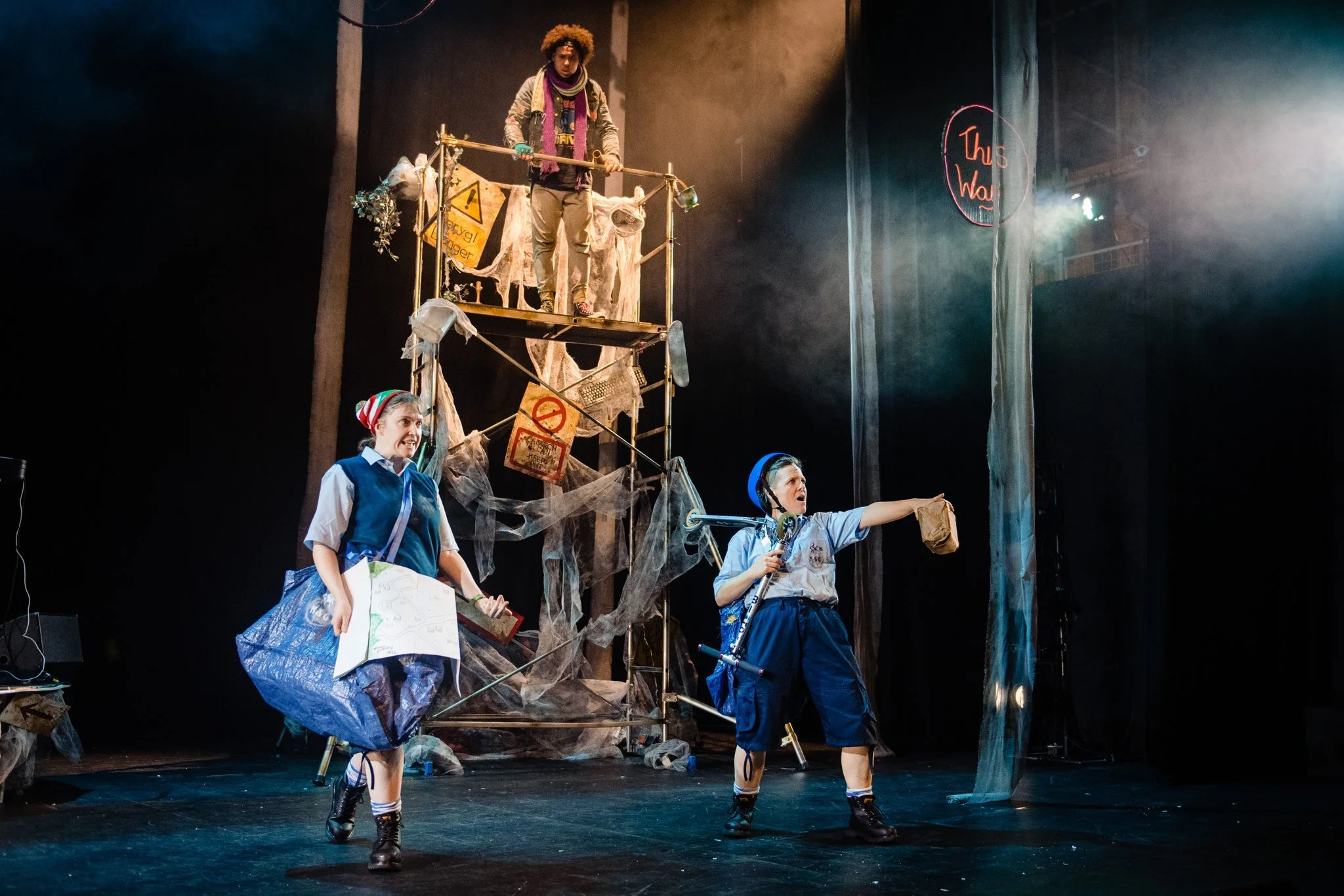 Rehearsal photo of the cast of Tidy/Taclus sorting out the 'messy' forest